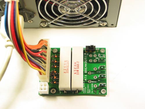 The ATX Breakout connected to a Power Supply