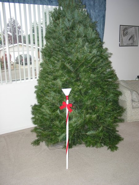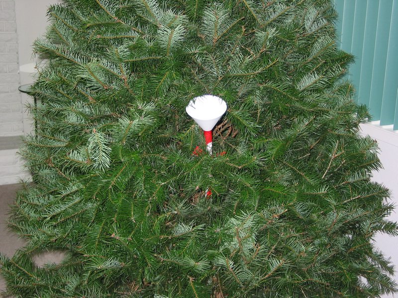 4: Your Done! Stick the Crafty Tree Watering Funnel in your Tree. Now you don’t have to reach under the tree to water. You may still need to see how much water to add or when to add water. There are products like the Tree Green that can help. There is always the guess and check method. |